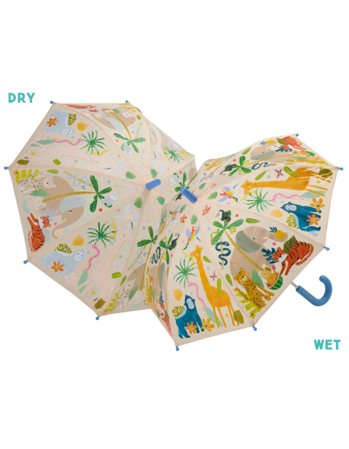Užliejus vandeniu, keičiasi spalvos. Nusispalvina tam tikros skėčio dalys.