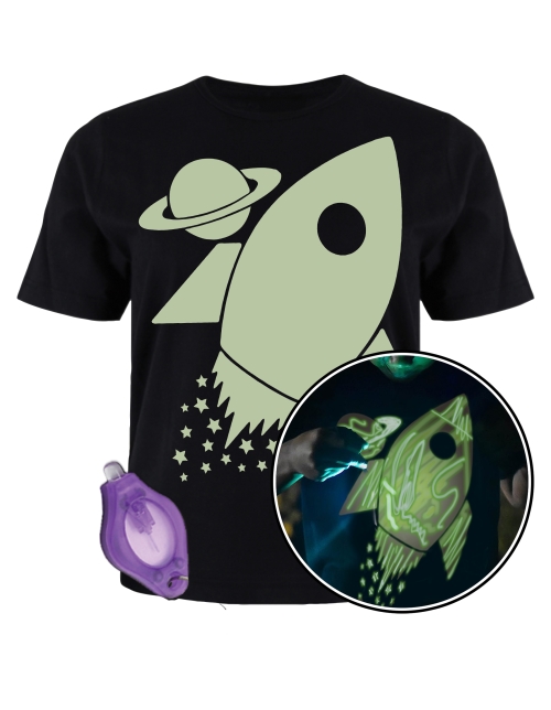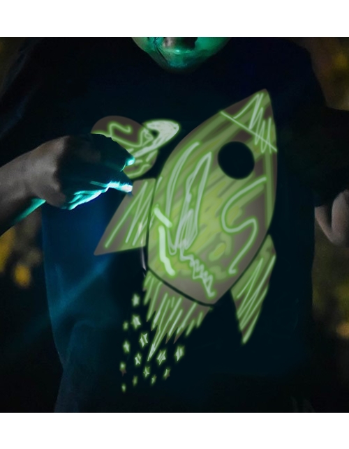 Vaikiški, šviečiantys tamsoje, marškinėliai.