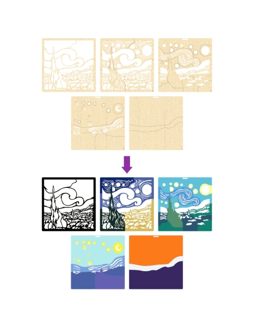 Mediniai 3D spalvinimo paveikslų rinkiniai yra nepaprastai smagūs ir lengvai pagaminami, o rezultatai – stulbinantys! Sukurkite 3D šedevrus, kuriais galėsite didžiuodamiesi papuošti savo sienas.