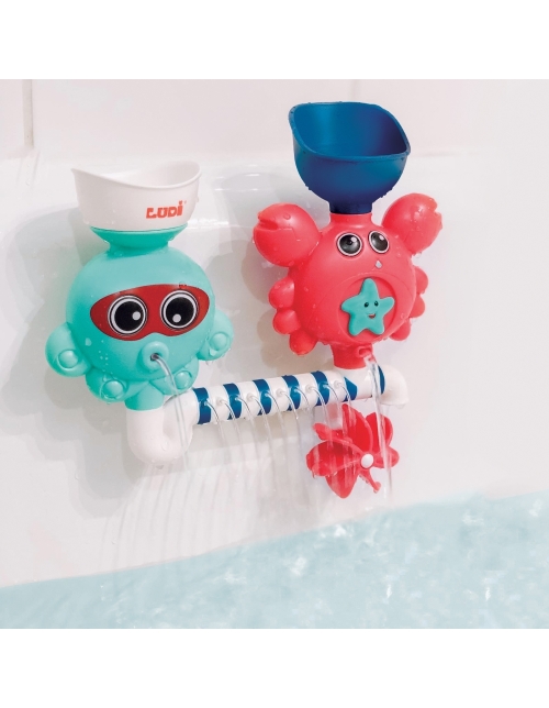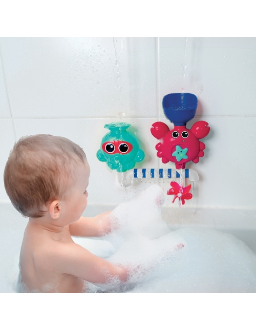 Žaislas siurbtukais tvirtinasi prie sienos ar prie vonios krašto.