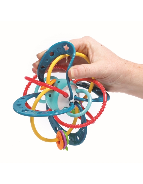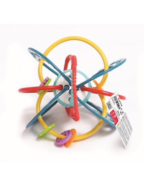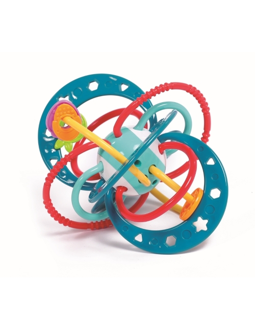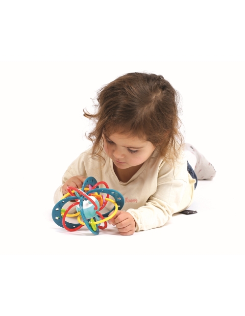 Spalvingas, unikalios formos kamuoliukas-varstukas turi skirtingų tekstūrų karoliukus bei žiedus bei barškantį centrą.