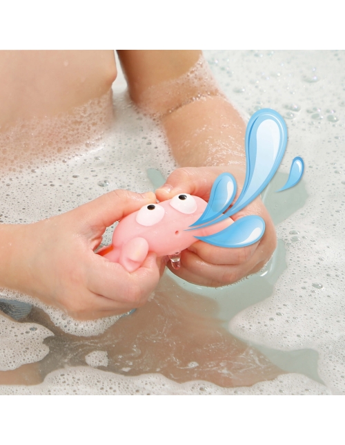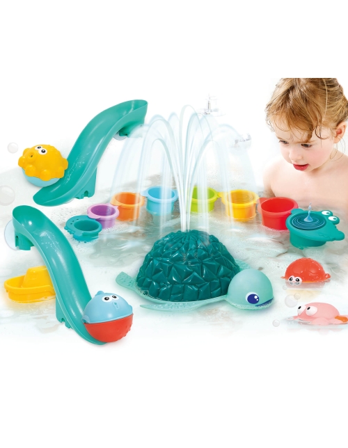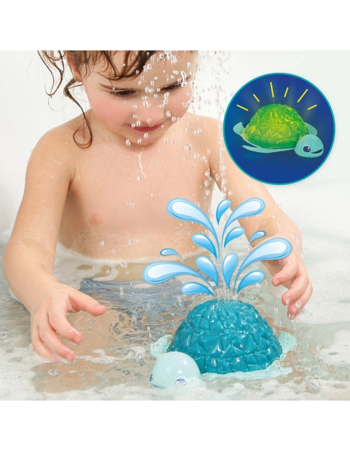 - 1 vėžlys - fontanas. Padėtas į vandenį šis mielas vėžliukas ima šviesti ir purkšti per nugarėlę vandenį. Žaislui reikalingos 3 x 1.5V LR03 (AAA) baterijos (į rinkinį neįeina).