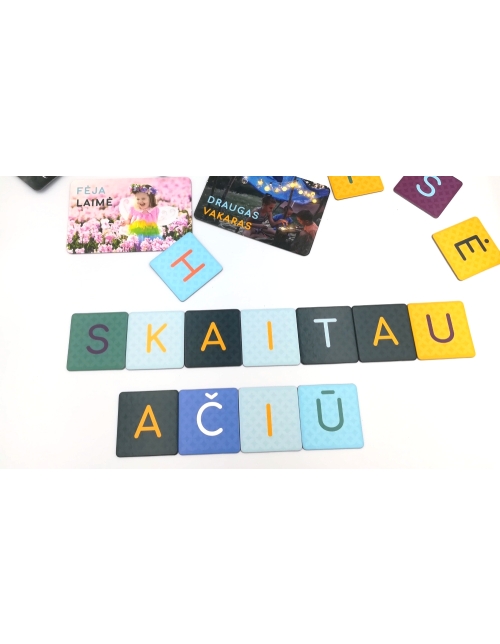 Priešmokyklinio amžiaus vaikams, kurie mokosi skaityti ir rašyti, šiame žaidime yra skirtos 18 kortelių su tikromis nuotraukomis bei žodžių pavyzdžiais, kaip dėlioti tam tikrus žodžius, pvz.: „Brolis“, „Jūra“ ir t.t. Vaikai pagal pavyzdį – kortelę iš raidžių kortelių dėlioja pasirinktus žodžius.
