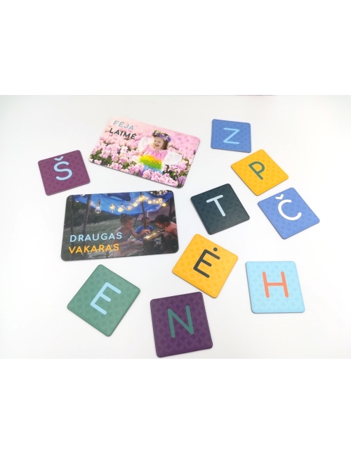 raidžių kortelės – 5 x 5 cm,
