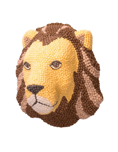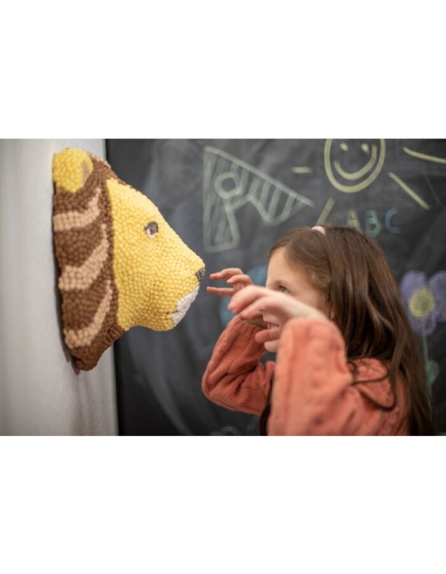- Viduje yra liūto galvos maketas, instrukcijos, kempinėlė