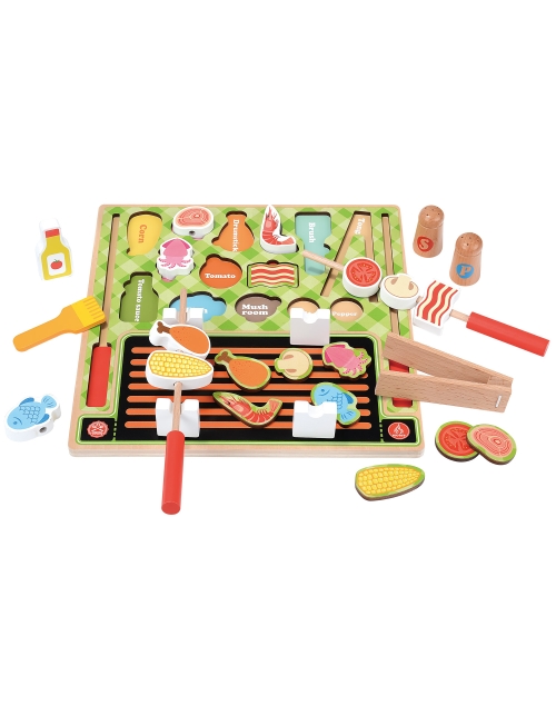 - Rinkinyje viskas, ko reikia grilio gurmanui: mentelė, žnyplės, iešmai, druska, pipirai, pomidorų padažas, įvairios mėsos bei daržovių rūšys ir pan.