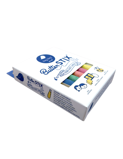 Rinkinyje yra 12 skirtingų spalvų ir vienas specialus kreidelės laikiklis.