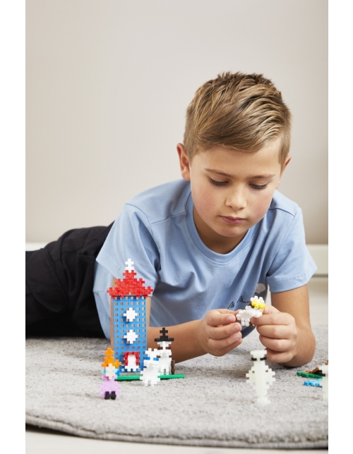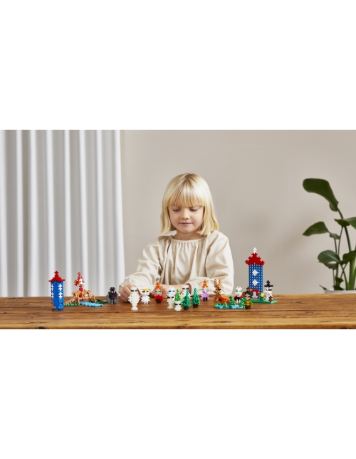 Pastatyk legendinį Muminukų namą ir sudėliok Muminukų šeimą - Muminuką, Freken Snork, Muminuko mamą ir Muminuko tėtį - kartu su Mažąja Miu, Snusmumriku, Smirdžiumi, Miumla, Filifjonka ir paslaptingaisiais Hatifnatarais. Pridėk medžių, medinį tiltelį ir tekančio vandens elementų, kad sukurtum savo Muminukų slėnį.