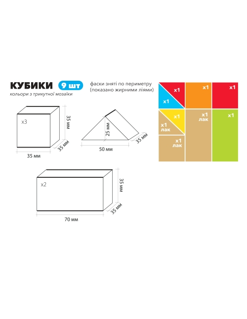 Su šiuo kaladėlių rinkiniu galima sukurti trimates geometrines figūras, mažus bokštelius, raketą, šunį bei atlikti logines užduotis. Mediniai žaislai malonūs liesti, lengvi ir atsparūs mechaniniams pažeidimams, o sutepus – lengvai nuplaunami su muilu. Žaidimas padeda lavinti: