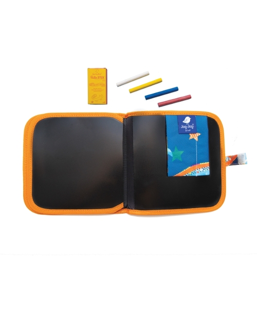 Knygelę sudaro 8 tušti puslapiai ir 4 nedulkančios ir netepančios rankyčių kreidelės.