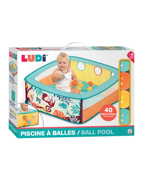 Rinkinyje kamuoliukų baseinas, krepšys, 40 kamuoliukų.