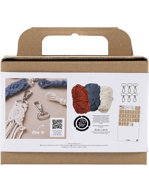 Naudodamiesi šiuo rinkiniu galite pasigaminti makramė raktų pakabukus sau ir draugams. Rinkinyje rasite visas reikalingas medžiagas ir instrukcijas.