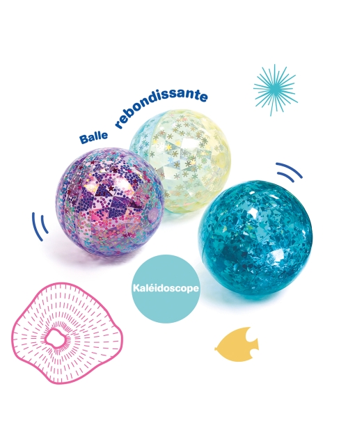 Ryškios kamuoliuko spalvos, blizgučiai ir šviesos žaismas su kiekvienu judesiu žaismingai atspindi šviesą ir patraukia mažylio dėmesį. Primena kaleidoskopą.