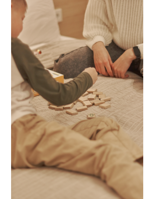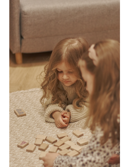 Šis žaidimas – klasikinio japoniško žaidimo „Mahjong“ variacija pritaikyta vaikams. Žaidimo pagalba galima lavinti loginį mąstymą, vaizduotę, atmintį, rūšiavimo, balansavimo bei smulkiosios motorikos ir kitus įgūdžius. Rinkinyje yra 1 tuščia kaladėlė „džokeris“ ir dviejų rūšių kaladėles su skirtingų temų iliustracijomis: juoda spalva pavaizduota jūros gyvūnija, o spalvotai - laukiniai gyvūnai.