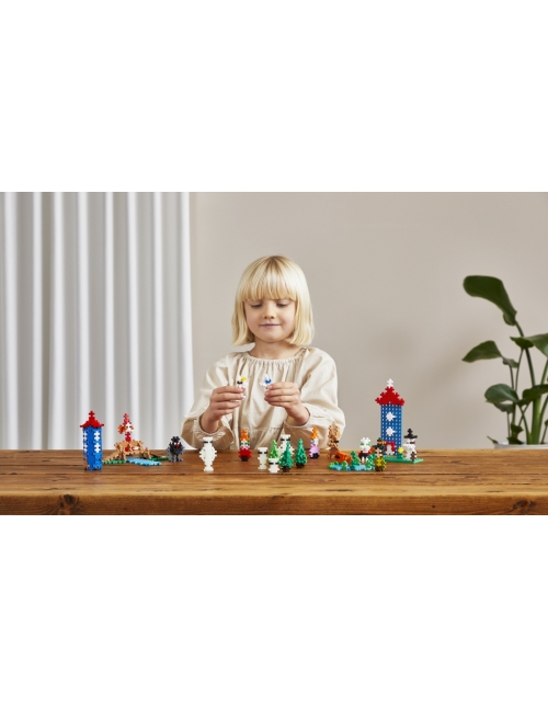 Pastatyk legendinį Muminukų namą ir sudėliok Muminukų šeimą - Muminuką, Freken Snork, Muminuko mamą ir Muminuko tėtį - kartu su Mažąja Miu, Snusmumriku, Smirdžiumi, Miumla, Filifjonka ir paslaptingaisiais Hatifnatarais. Pridėk medžių, medinį tiltelį ir tekančio vandens elementų, kad sukurtum savo Muminukų slėnį.