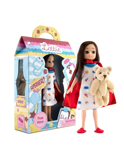 Lottie pasipuošusi su naktinukais, specialiu, super galių priduodančiu apsiaustu, o kad būtų drąsiau, drauge keliauja pliušinis meškiukas Tedis.